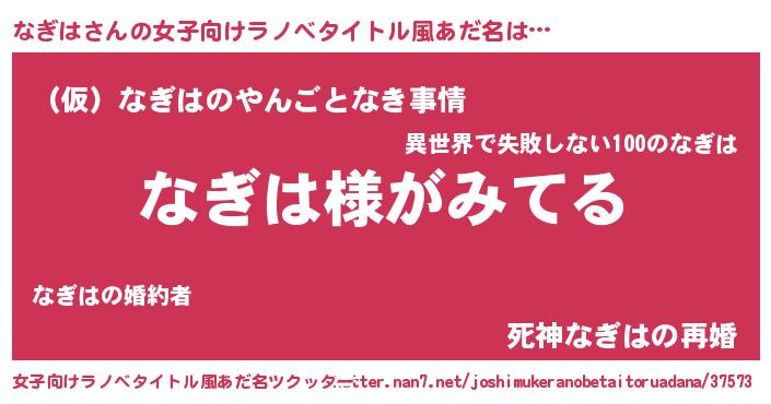 | 男性向けラノベタイトル風あだ名 | 『なぎはの嫁は女の子じゃないと思った?』 |