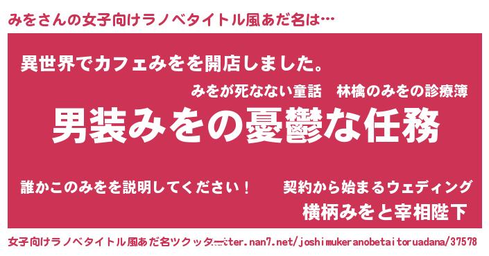 | 男性向けラノベタイトル風あだ名 | 『うちのみをが世界を掌握している!』 |
