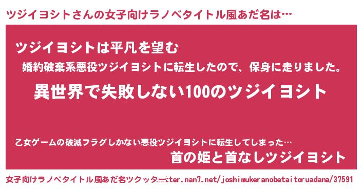 | 胡散臭い通販商品みたいなあだ名 | 『絶対に幸福をもたらす水素水…その名も「ツジイヨシト」』 |