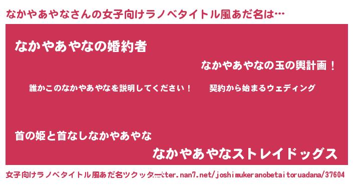 | 男性向けラノベタイトル風あだ名 | 『ナカヤアヤナアートオンライン』 |