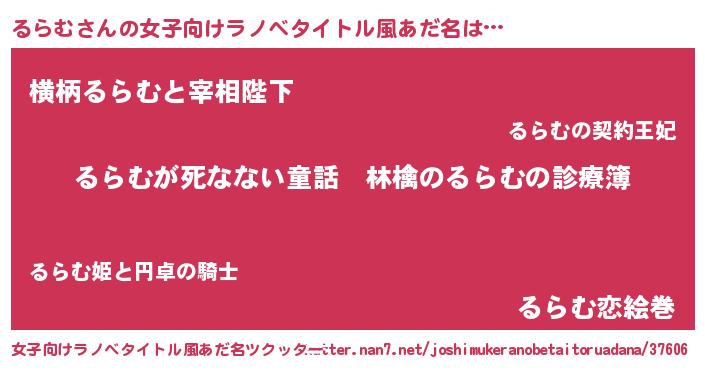 | ヒーロー風カッコイイあだ名 | 『仮面ルラダー』『慈愛の使者るらむ』 |