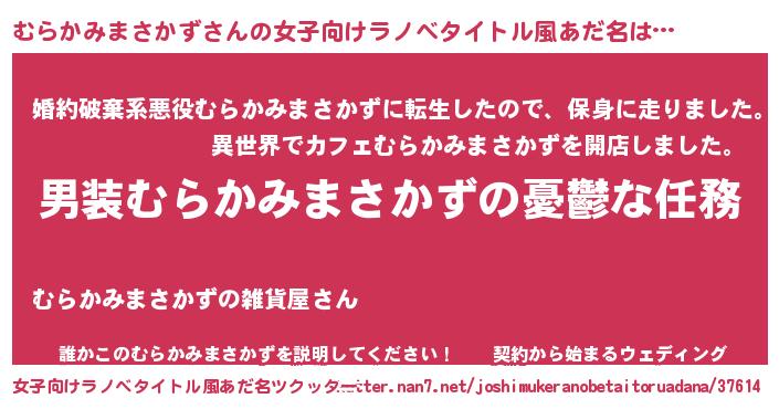 | ヘコむあだ名 | 『むらにゅー』『むらかみまさかず(小並感)』 |