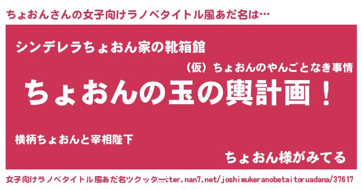 | 男性向けラノベタイトル風あだ名 | 『転生したらちょおんだった件』 |