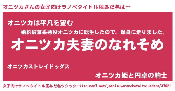 | 男性向けラノベタイトル風あだ名 | 『おまえをオタクにしてやるから、俺をオニツカにしてくれ! 』 |