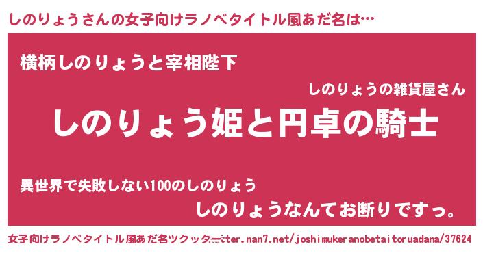 | 意味不明あだ名 | 『ペロリンしのりょう』『自称しのりょう』 |