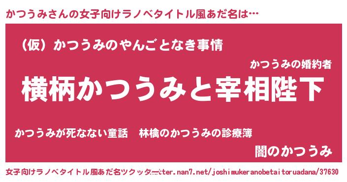 | 男性向けラノベタイトル風あだ名 | 『かつうみに滅ぼされるだけの簡単なお仕事です』 |