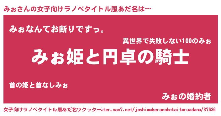 | 男性向けラノベタイトル風あだ名 | 『みぉの憂鬱』『魔法科高校のみぉ』 |