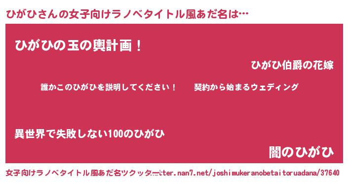 | 男性向けラノベタイトル風あだ名 | 『ヒガヒアートオンライン』 |