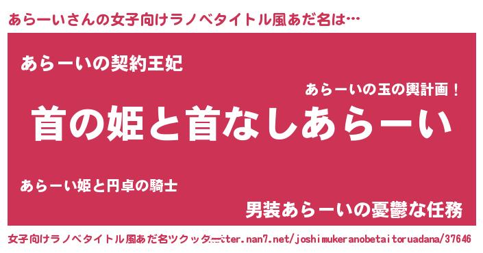 | 胡散臭い通販商品みたいなあだ名 | 『絶対に幸福をもたらす健康食品…その名も「あらーい」』 |