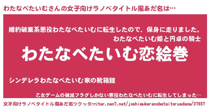 | 欧米人風あだ名 | 『ダニエルわたなべたいむ』 |