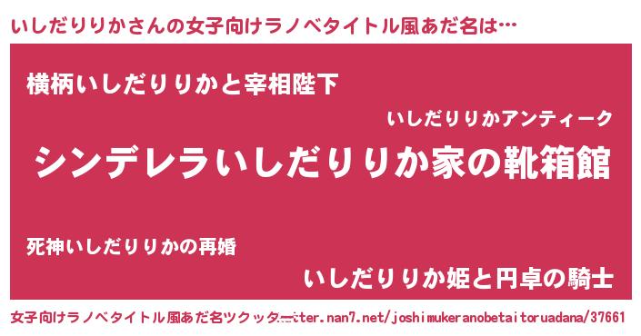 | 男性向けラノベタイトル風あだ名 | 『冴えないいしだりりかの育てかた』 |