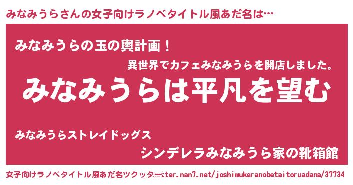 | 男性向けラノベタイトル風あだ名 | 『ダンジョンにみなみうらを求めるのは間違っているだろうか』 |