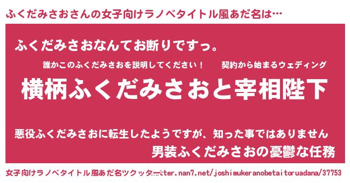 | 男性向けラノベタイトル風あだ名 | 『ふくだみさおに滅ぼされるだけの簡単なお仕事です』 |