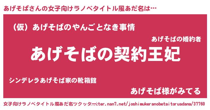 | 胡散臭い通販商品みたいなあだ名 | 『来世でも幸せになれる水素水…その名も「あげそば」』 |