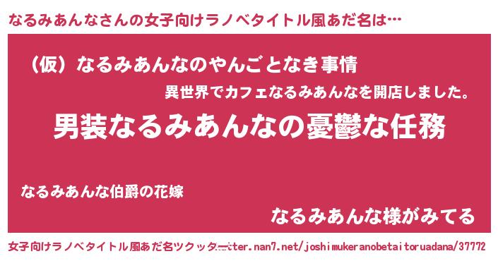 | 男性向けラノベタイトル風あだ名 | 『うちのなるみあんなが世界を掌握している!』 |