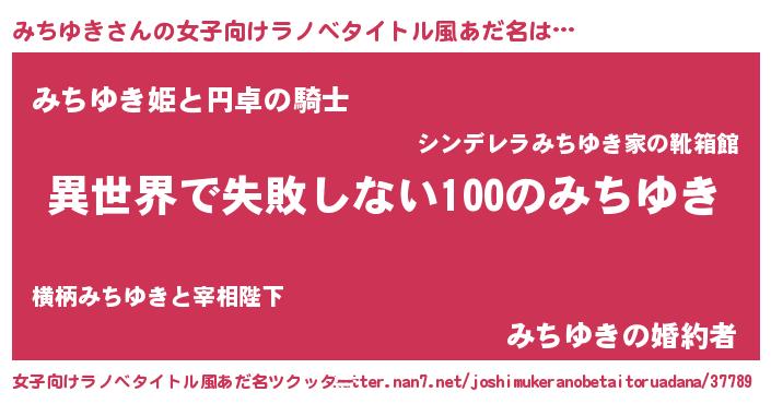 | 男性向けラノベタイトル風あだ名 | 『みちゆきという概念が存在しない退屈な世界 』 |