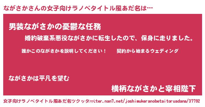 | 男性向けラノベタイトル風あだ名 | 『ナガサカアートオンライン』 |