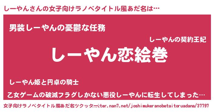 | ヒーロー風カッコイイあだ名 | 『慈愛の使者しーやん』『仮面シーダー』 |