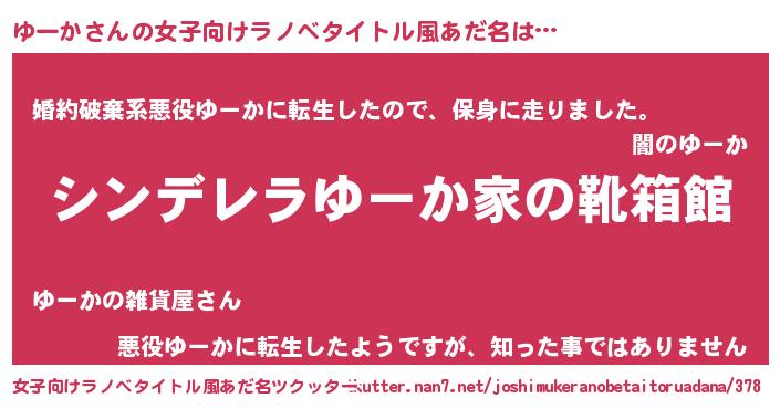 | 意味不明あだ名 | 『なめこ科ゆーか属』『自称ゆーか』 |