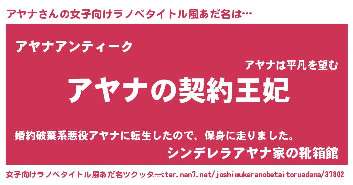 | 男性向けラノベタイトル風あだ名 | 『アヤナという概念が存在しない退屈な世界 』 |