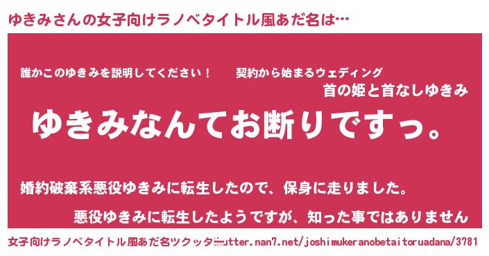 | 意味不明あだ名 | 『自称ゆきみ』『ペロリンゆきみ』 |