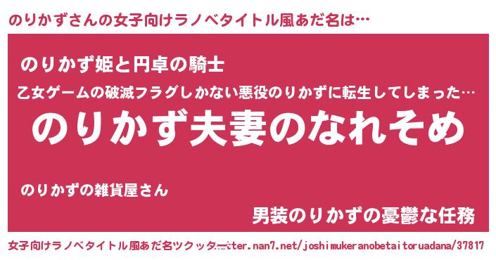| 男性向けラノベタイトル風あだ名 | 『おまえをオタクにしてやるから、俺をのりかずにしてくれ! 』 |