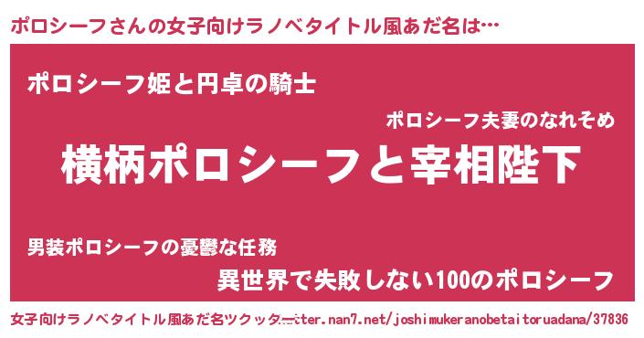 | 男性向けラノベタイトル風あだ名 | 『ポロシーフに滅ぼされるだけの簡単なお仕事です』 |