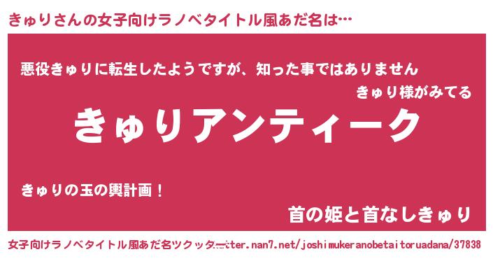 | 意味不明あだ名 | 『自称きゅり』『住所不定無職きゅり(10歳)』 |