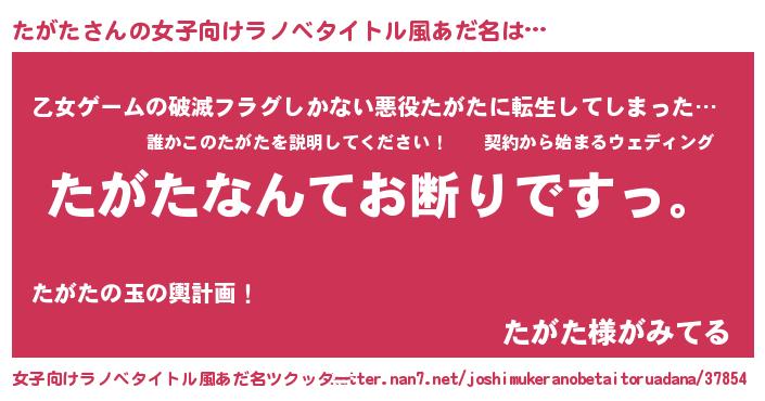 | 男性向けラノベタイトル風あだ名 | 『魔法科高校のたがた』 |