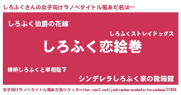 | 男性向けラノベタイトル風あだ名 | 『おまえをオタクにしてやるから、俺をしろふくにしてくれ! 』 |