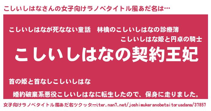 | 男性向けラノベタイトル風あだ名 | 『誰もが恐れるあのこしいしはなが、ぼくの専属メイドになるようです。』 |
