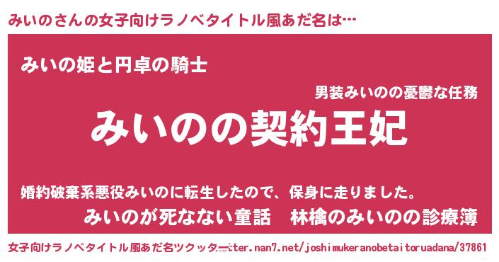 | 男性向けラノベタイトル風あだ名 | 『誰もが恐れるあのみいのが、ぼくの専属メイドになるようです。』 |