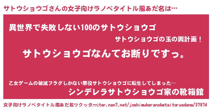 | 意味不明あだ名 | 『自称サトウショウゴ』 |