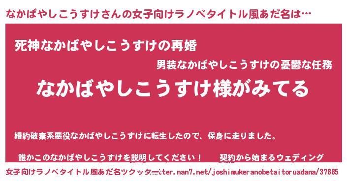 | 男性向けラノベタイトル風あだ名 | 『なかばやしこうすけの嫁は女の子じゃないと思った?』 |