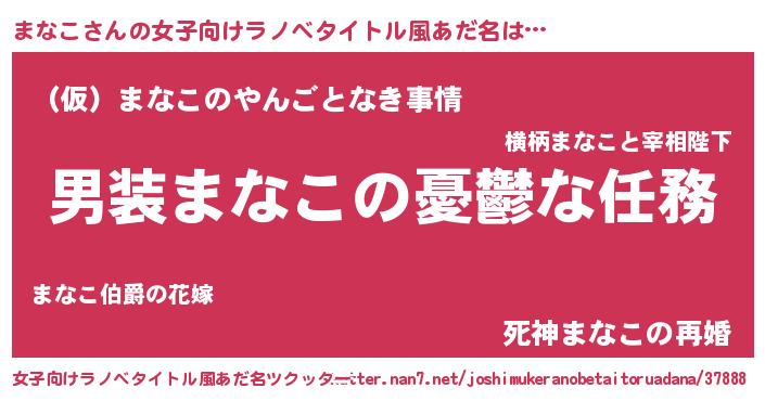 | ヘコむあだ名 | 『まなにー』『酢こんぶ』『まなお』 |