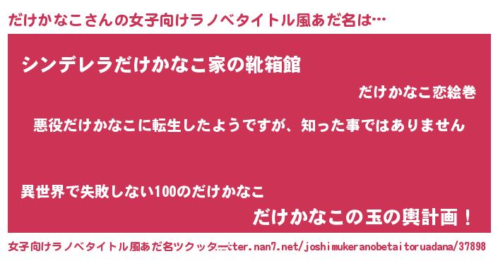 | 男性向けラノベタイトル風あだ名 | 『この素晴らしい世界にだけかなこを!』 |