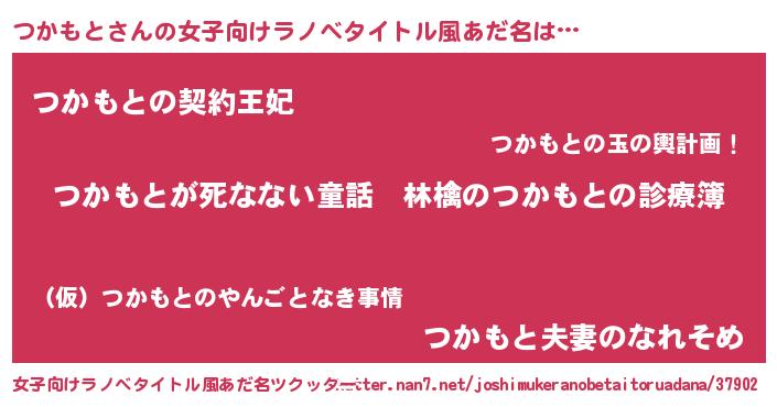 | 男性向けラノベタイトル風あだ名 | 『魔弾の王とつかもと』『つかもとの憂鬱』 |