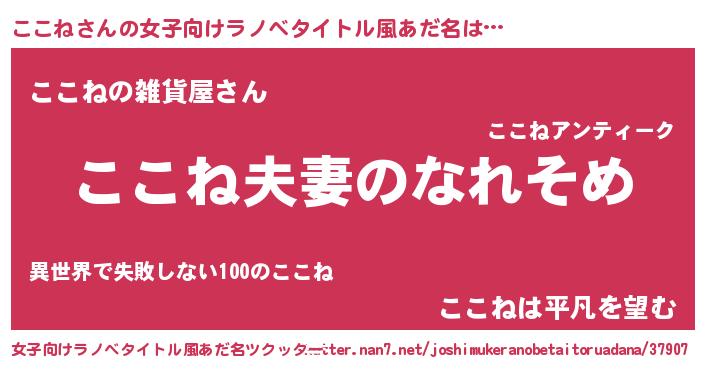 | 男性向けラノベタイトル風あだ名 | 『おまえをオタクにしてやるから、俺をここねにしてくれ! 』 |