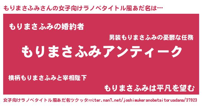 | 男性向けラノベタイトル風あだ名 | 『魔法科高校のもりまさふみ』 |