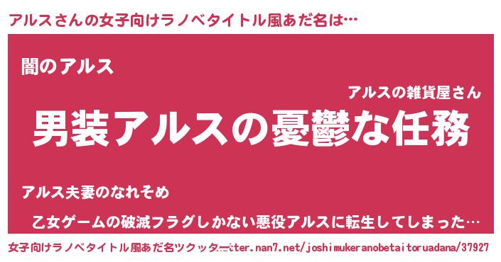 | ヒーロー風カッコイイあだ名 | 『最強戦士アルス』『仮面アルダー』 |