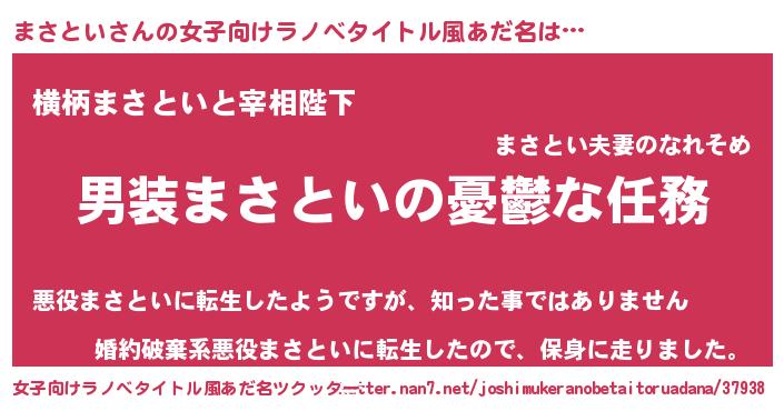| 男性向けラノベタイトル風あだ名 | 『うちのまさといが世界を掌握している!』 |