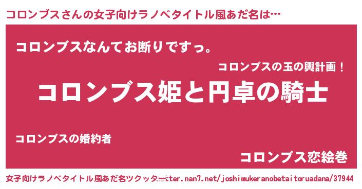 | 男性向けラノベタイトル風あだ名 | 『コロンブスの憂鬱』 |