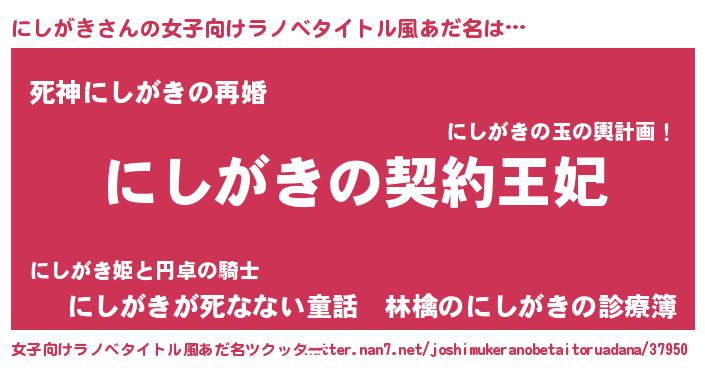 | 男性向けラノベタイトル風あだ名 | 『にしがきという概念が存在しない退屈な世界 』 |