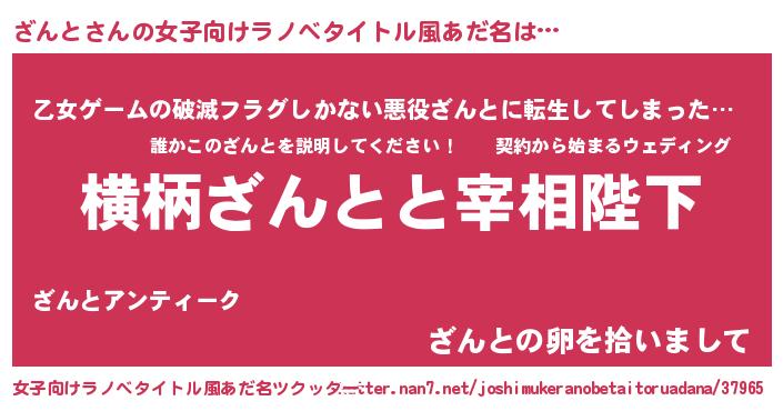 | 意味不明あだ名 | 『住所不定無職ざんと(40歳)』『自称ざんと』 |