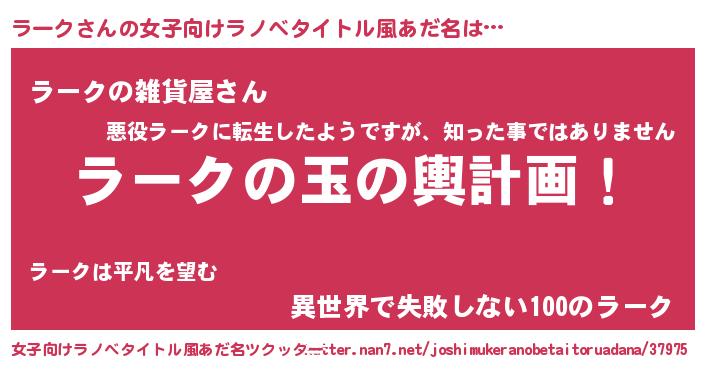 | 胡散臭い通販商品みたいなあだ名 | 『運命の人と巡り会える高級そうな壺…その名も「ラーク」』 |