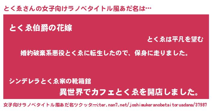 | 男性向けラノベタイトル風あだ名 | 『トクヱスレイヤー』『緋弾のトクヱ』 |