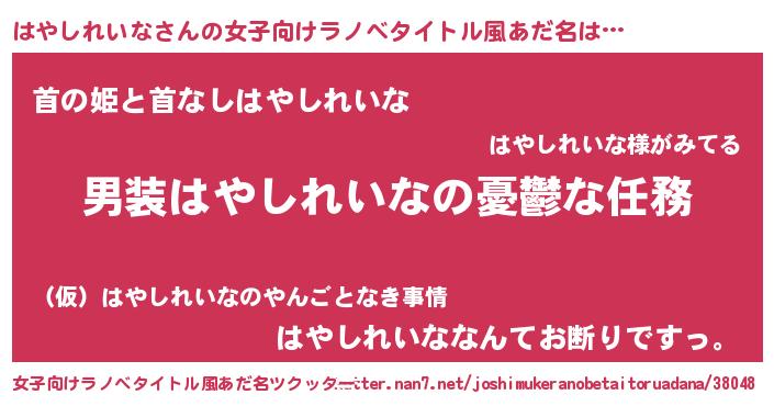 | ヒーロー風カッコイイあだ名 | 『最強戦士ハヤシレイナ』『黄金騎士ハヤ』 |