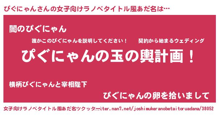 | 男性向けラノベタイトル風あだ名 | 『転生したらぴぐにゃんだった件』 |