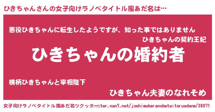 | 意味不明あだ名 | 『ひきちゃんフォーエバー』 |