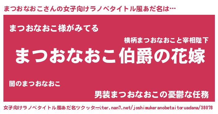 | 男性向けラノベタイトル風あだ名 | 『やはりまつおなおこの青春ラブコメはまちがっている 』 |